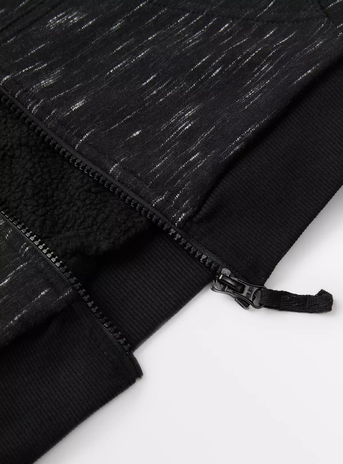 Super cool and super comfy, our black marl hoodie features a cosy borg lining. Perfect for their mini wardrobe this season, it has a handy hood and zip fastening. Team it with jeans and their favourite trainers for the ultimate look!