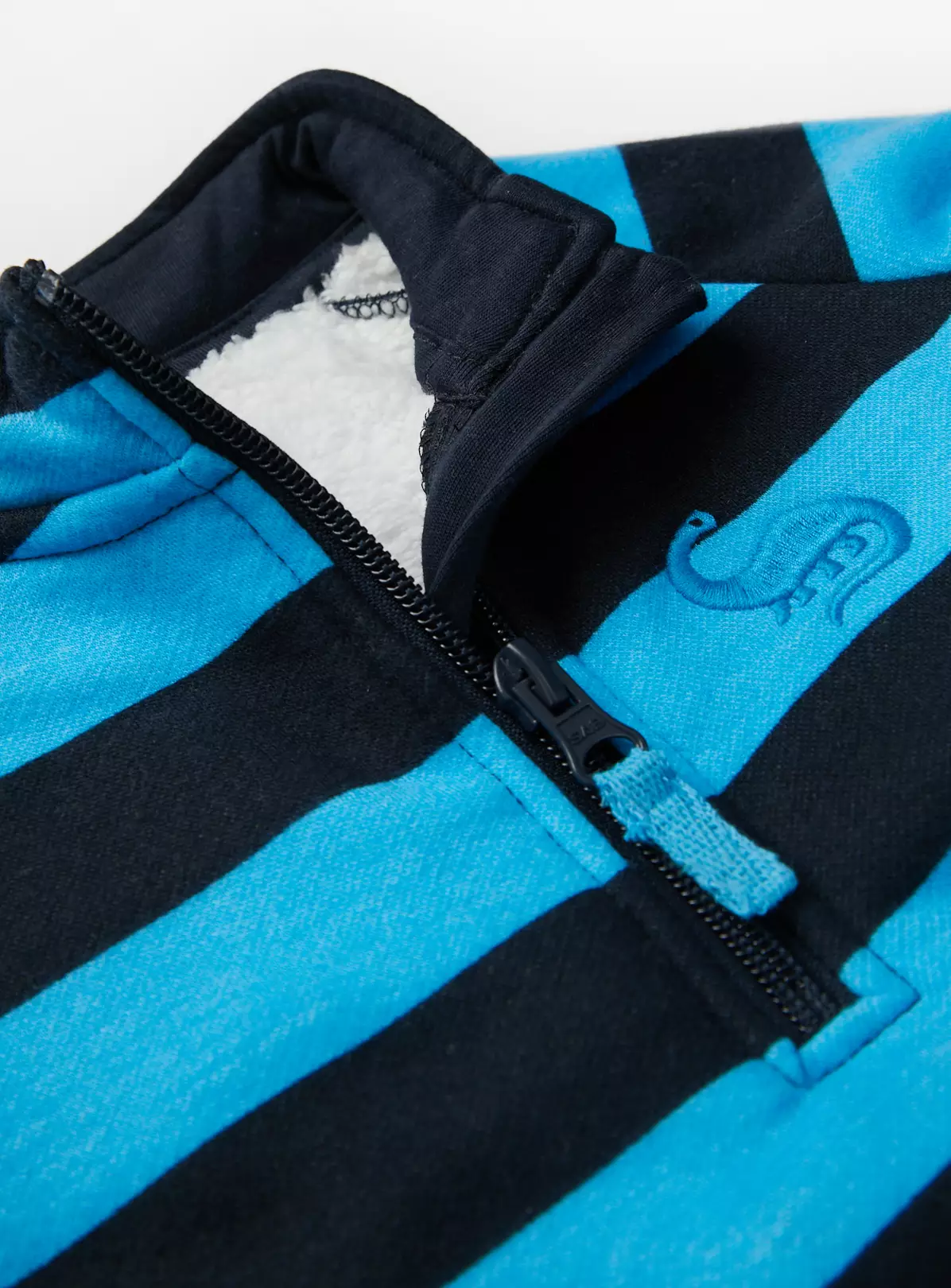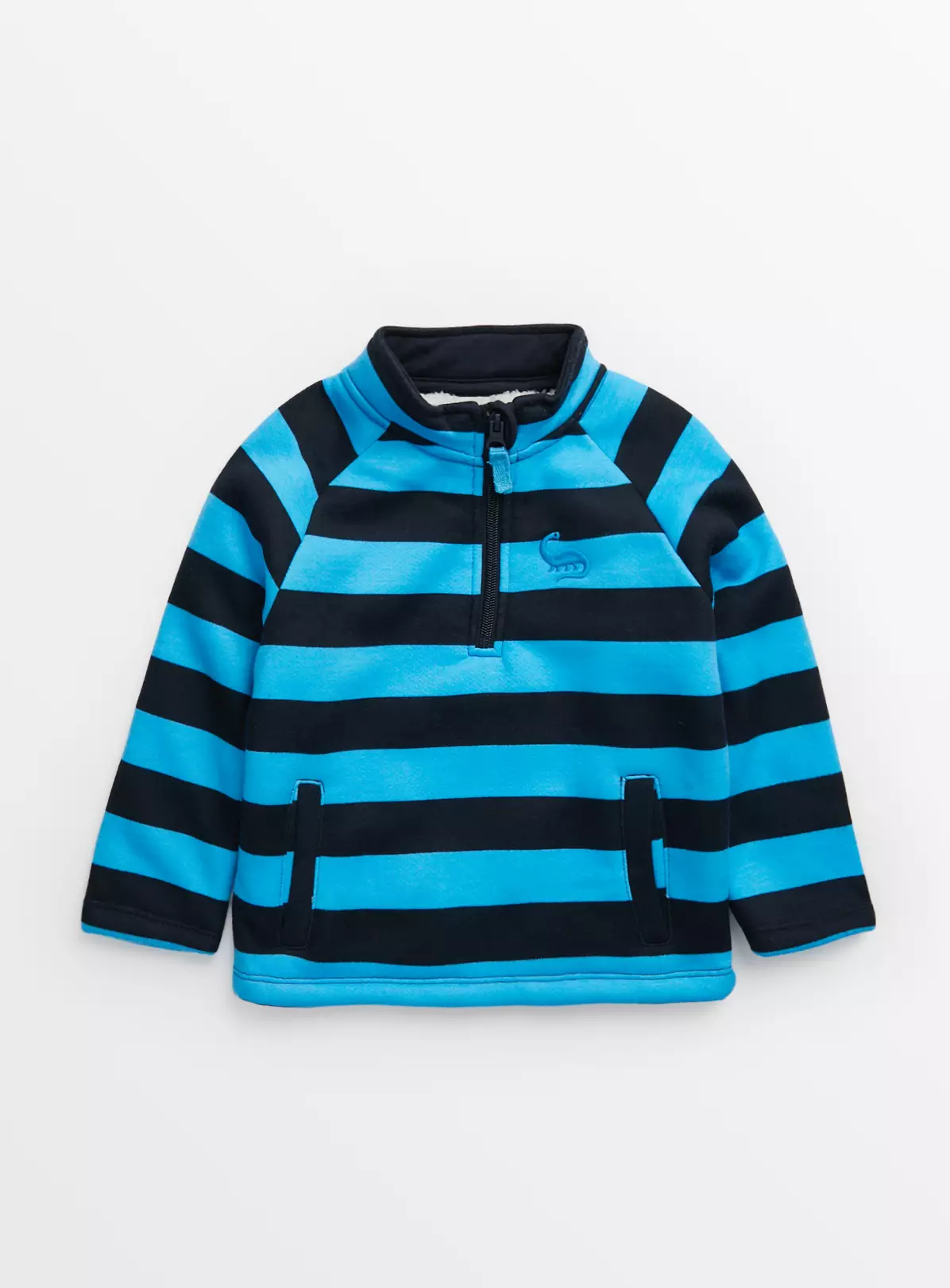 The ultimate winter layer for your little adventurer. Our trendy blue stripe quarter zip fleece has a high neckline to keep them cosy when they’re out and about. Team with cargos for a cool outfit this chilly season.