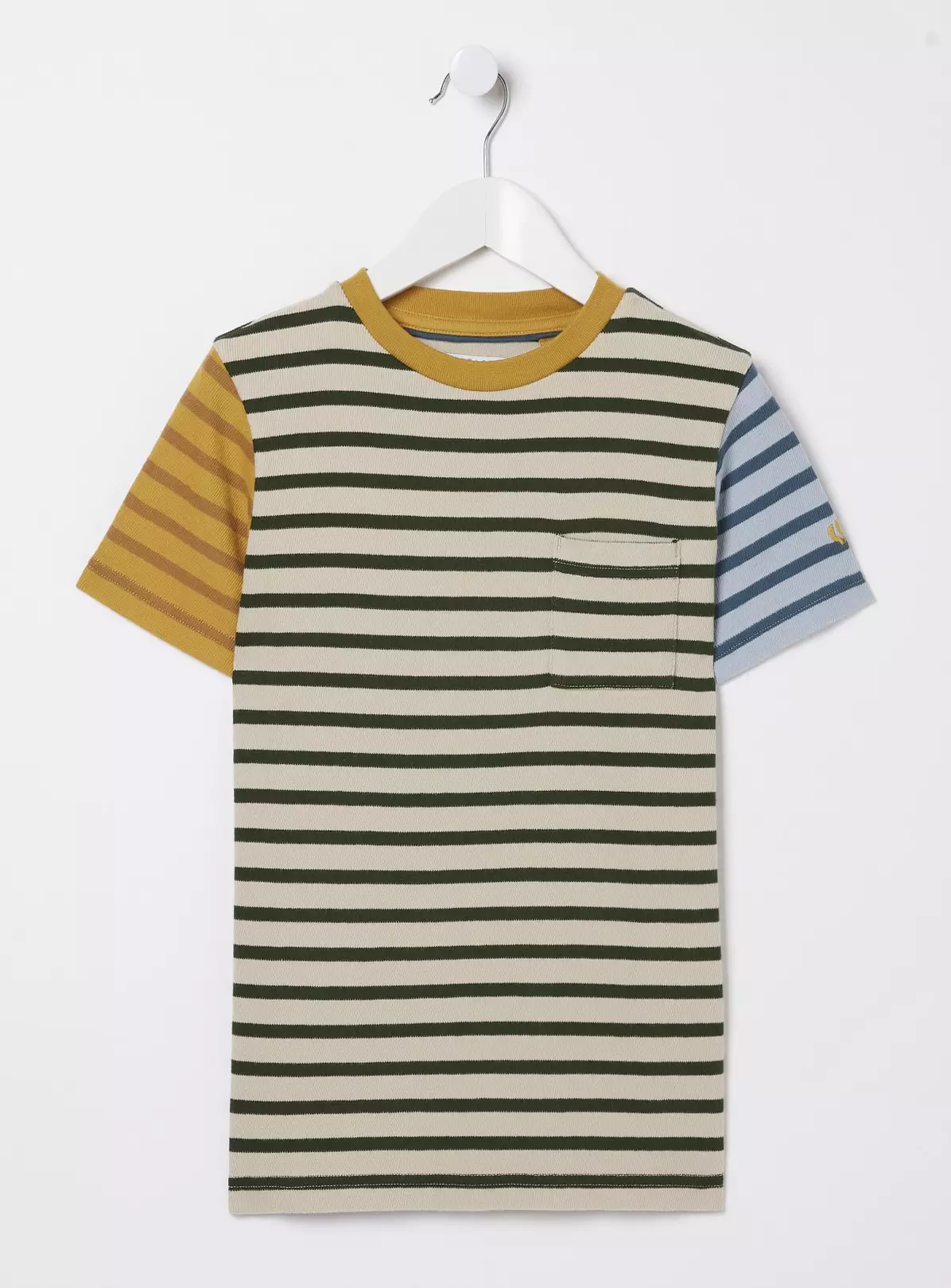 Get them ready for all their adventures with our bright and colourful striped tee. Made with hardworking cotton with a hint of stretch (for extra comfort), they’ll love the relaxed fit and the fun design.