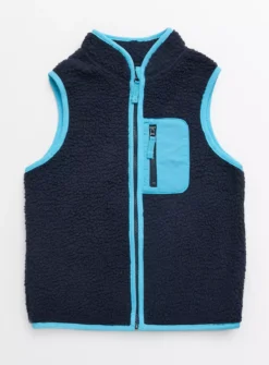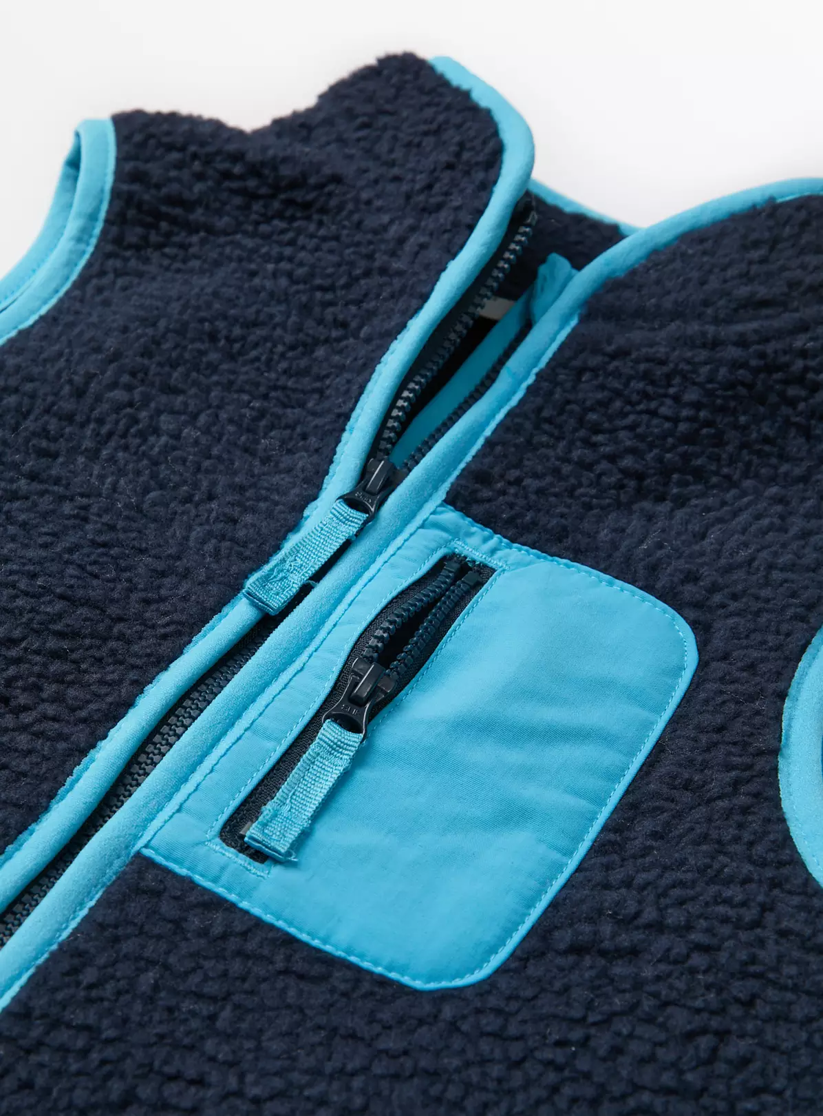 Navy Neon Contrast Borg Fleece Gilet1.5-2 Years