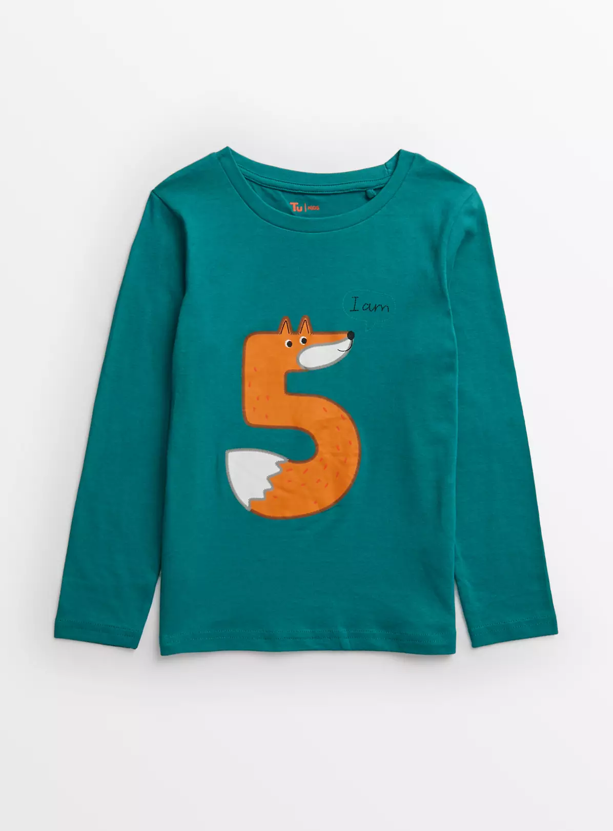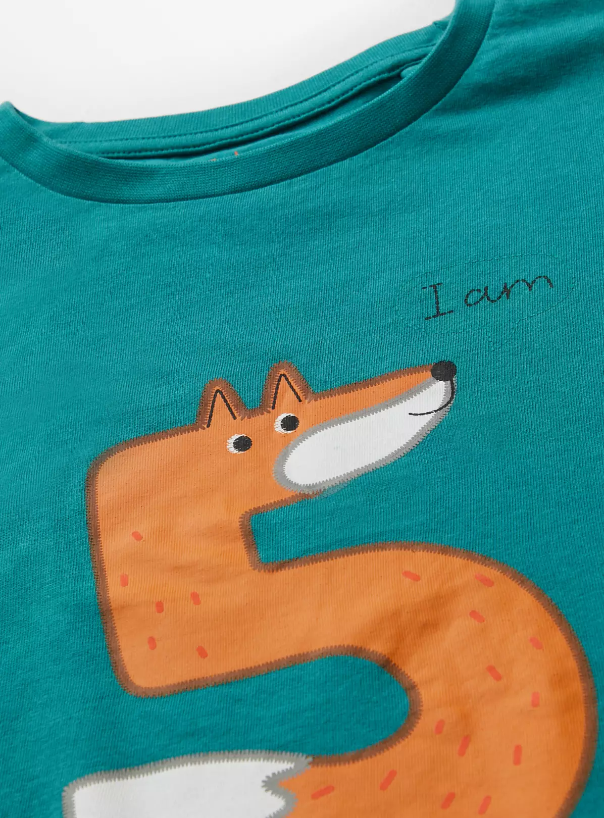Celebrate your little one’s latest milestone with this adorable long sleeve tee! Made from pure cotton, it comes in teal with a cuddly fox curled into a number five telling everyone their age. Team with jeans or joggers and they’ll be ready for their next playdate.