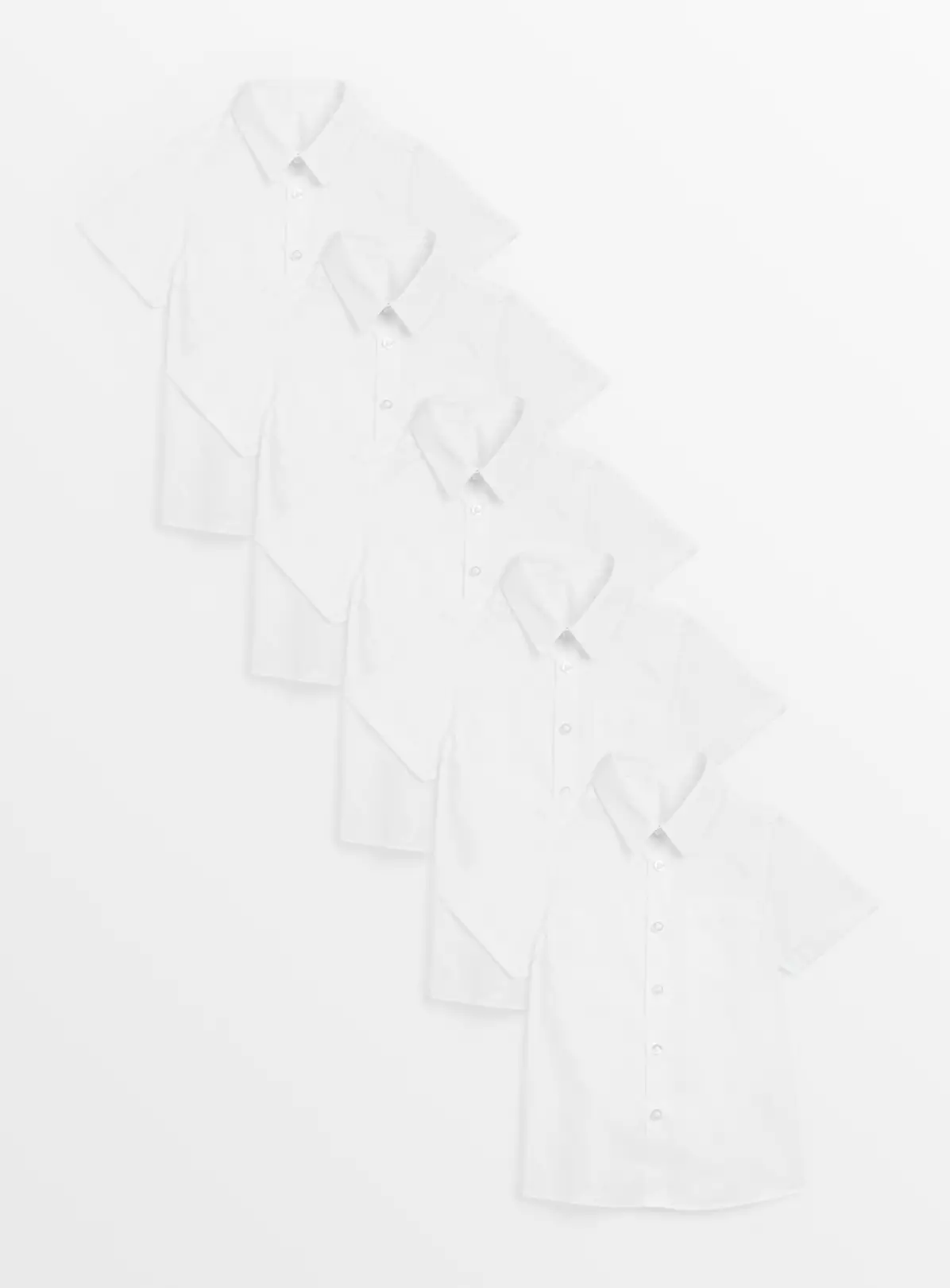 Featuring a classic collar, this pack of five shirts are a school day essential. In a short-sleeved design, they present full-length value fastenings and are complete with a single chest pocket.